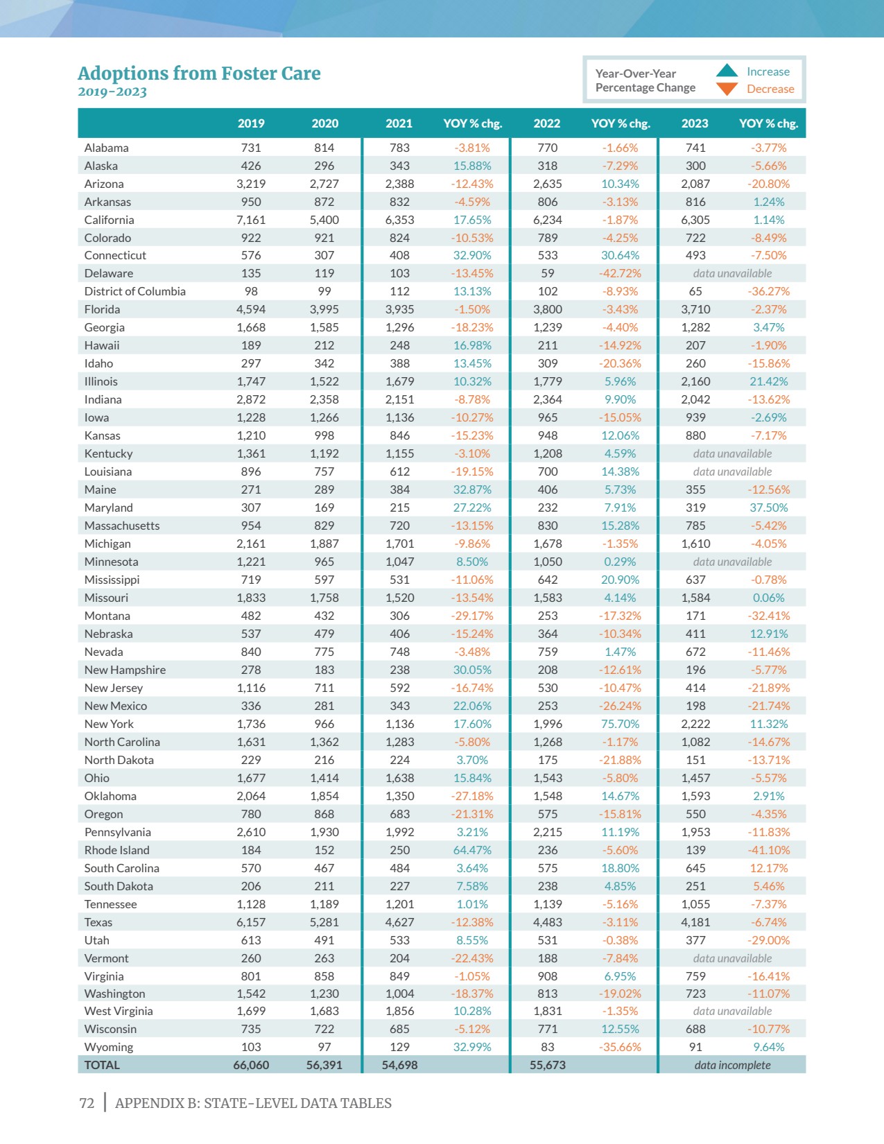“In 2022, an estimated 80,598 children were adopted in the U.S., excluding stepparent adoptions.