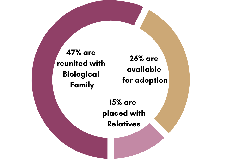 Foster Cares primary goal is to reunify children with their biological parents.